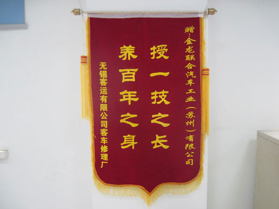在售后服務(wù)方面,由蘇州金龍駐點(diǎn)服務(wù)經(jīng)理全天候?yàn)檐囕v提供保姆式服務(wù)。為了及時(shí)響應(yīng)服務(wù),駐無錫地區(qū)服務(wù)經(jīng)理張曉斌“十•一”黃金周沒有回老家探親,連母親病重臥床不起都無暇顧及。更讓客戶感動(dòng)客戶的是11月15日上午,張曉斌接到妻子在蘇州即將分娩的電話,但他因?yàn)榘才庞锌蛻襞嘤?xùn),不能耽誤已經(jīng)安排好的工作,只能稍作安排悄然掛斷電話……。舍小家為客戶,張曉斌通過自己嚴(yán)謹(jǐn)、細(xì)致、周到的服務(wù)贏得了客戶的贊譽(yù)。近日,客戶專程到公司送來“用戶至上、親情服務(wù)”的錦旗,以表達(dá)對(duì)無錫地區(qū)服務(wù)經(jīng)理張曉斌的謝意。