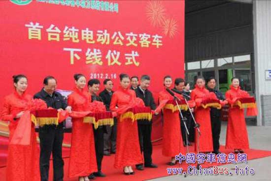 圖片說(shuō)明:重慶恒通電動(dòng)客車動(dòng)力系統(tǒng)有限公司首臺(tái)客車下線儀式