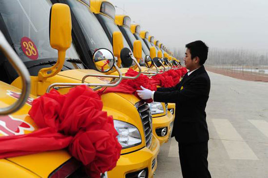 2月23日,寧夏中衛(wèi)市在中衛(wèi)六中校門口舉行校車運(yùn)營啟動(dòng)儀式。由政府出資45%,企業(yè)出資55%,共計(jì)投入資金1533.76萬元購置的40輛校車正式投入運(yùn)營。