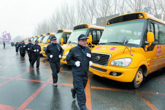 司機(jī)各就各位,嶄新的校車整裝待發(fā)