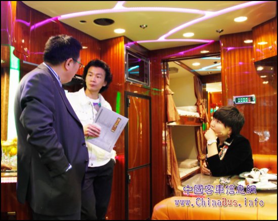 在展位工作人員的陪同下,記者登上了這臺(tái)神秘的客車,再次被其奢華的內(nèi)在所震撼。