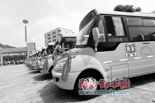 而昨天東莞鳳崗翡翠山湖小學(xué)在昨天一口氣花了300萬元購置了10輛新的宇通美式牛鼻子校車,新校車核載37人。據(jù)該校有關(guān)負(fù)責(zé)人介紹,該?,F(xiàn)有900多名學(xué)生,其中有一半是走讀的,原先配置的校車有8輛,有部分核載是超過56人的,不符合新標(biāo)準(zhǔn),加上原先校車比較舊了,所以該校就將原先8輛校車全部淘汰,換上新的校車。據(jù)了解,新校車在安全性上更勝一籌,每個座位都有安全帶、有G PS定位、應(yīng)急逃生裝備、自帶醫(yī)療箱等。