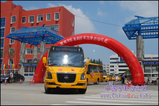 記者在儀式上看到,100輛黃海長頭專用校車顯得特別搶眼,據(jù)介紹:黃海專用校車在外觀上采用長頭式設計,具有正面碰撞吸收動能的作用;車架采用貫通式大梁和封閉環(huán)結構,可使車輛發(fā)生意外時最大限度地保證車內(nèi)生存空間不被侵犯;3600全方位無盲區(qū)視角,保證司機觀察到車輛周圍所有情況;電動停車示意臂用以警示前后方車輛及時避讓。車內(nèi)空間寬敞,座位間距大,緊急逃生安全門布置在車內(nèi)后側;車內(nèi)無尖銳突出物、內(nèi)飾既環(huán)保又防火阻燃,每處細節(jié)都體現(xiàn)出對學生的安全呵護;與校車管理中心聯(lián)網(wǎng)的車內(nèi)監(jiān)控系統(tǒng)、上下車刷卡器、行車記錄儀等,時時保障校車的運行安全。尤其值得一提的是,黃海專用校車針對北方地區(qū)進行了一系列的優(yōu)化設計:如加大的除霜口、大功率暖風、電加熱式角窗、防融雪劑侵蝕的底盤裝甲等。同時根據(jù)農(nóng)村地區(qū)道路的特殊情況,采用了少片鋼板彈簧的懸架結構,不僅提升了底盤高度,使得車輛的通過性得以加強,還極大提升了乘車的舒適度。