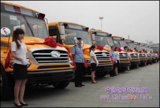 6月1日下午,山東省濱州市政府隆重舉行“平安校車”啟用儀式,首批51輛嶄新的美式“長鼻子”校車正式交付使用,為當(dāng)?shù)刂行W(xué)生獻(xiàn)上了一份兒童節(jié)的厚禮?!捌桨残\嚒惫こ淌菫I州市今年的重點(diǎn)民生項(xiàng)目,當(dāng)?shù)卣赓Y2000多萬元購置了首批51輛長頭校車,由濱州市公共汽車公司具體負(fù)責(zé)“平安校車”的運(yùn)營管理。