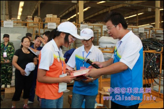在宇通工業(yè)園騰飛廣場(chǎng)舉行的開(kāi)營(yíng)破冰儀式上,宇通孩子與來(lái)自汝陽(yáng)的伙伴們混合編隊(duì),并結(jié)成了對(duì)子。隨后,在宇通志愿者的帶領(lǐng)下,營(yíng)員們一起乘車參觀了國(guó)內(nèi)最大的客車生產(chǎn)基地。在宇通承裝車間,現(xiàn)代化的生產(chǎn)線定格了孩子們驚羨的目光。在客車淋雨實(shí)驗(yàn)室,孩子們?cè)谲噧?nèi)興奮地摸著窗戶,體驗(yàn)著“水簾洞”帶來(lái)的欣喜和刺激。在展車現(xiàn)場(chǎng),黃色的“大鼻子”校車前,孩子們不覺(jué)停下了腳步,他們左摸摸,右看看,臉上洋溢著快樂(lè)的笑容。