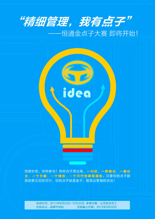 2012年是恒通客車奠定堅(jiān)實(shí)基礎(chǔ)、促進(jìn)發(fā)展的關(guān)鍵之年。恒通客車希望通過此次活動(dòng)的開展,激發(fā)員工全員質(zhì)量意識(shí)、主人翁意識(shí)和責(zé)任意識(shí),鼓勵(lì)員工自行發(fā)掘問題、解決問題;同時(shí),通過精心挑選和綜合評(píng)估,挖掘一些對(duì)公司管理效能提升和產(chǎn)品品質(zhì)提升有創(chuàng)新性、針對(duì)性、操作性強(qiáng)的優(yōu)秀點(diǎn)子,以點(diǎn)帶面,在公司內(nèi)掀起學(xué)質(zhì)量、講質(zhì)量、重質(zhì)量的全員氛圍;并借助公司的推廣行為,使其成為一種長(zhǎng)期可持續(xù)性的企業(yè)文化。