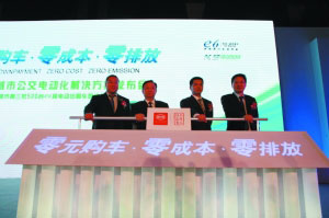 11月3日,比亞迪在京發(fā)布針對電動(dòng)大巴k9和電動(dòng)出租車e6的零首付金融方案。