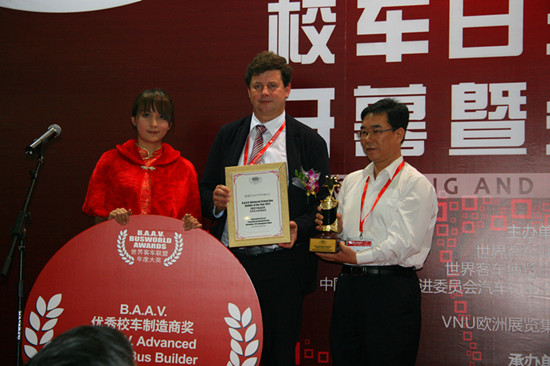 享有“客車行業(yè)奧斯卡”之稱的ACW亞洲客車周BAAV大獎(jiǎng)是客車領(lǐng)域的最高獎(jiǎng)項(xiàng)。本屆ACW亞洲客車周特別鎖定校車熱點(diǎn),推出2012BAAV校車年度大獎(jiǎng),通過考評(píng)各校車制造商的表現(xiàn)來決定獎(jiǎng)項(xiàng)歸屬,內(nèi)容包括企業(yè)實(shí)力、技術(shù)亮點(diǎn)、創(chuàng)新能力、校車安全設(shè)計(jì)等多項(xiàng)評(píng)選標(biāo)準(zhǔn)。