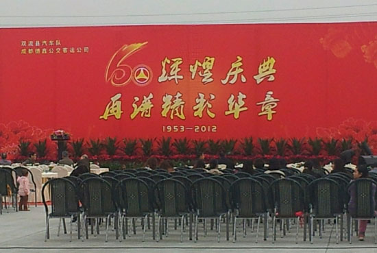 2012年10月18日,蜀都客車攜五款車型助陣成都雙流大林客運(yùn)中心開(kāi)業(yè),并對(duì)雙流縣汽車隊(duì)成立六十周表示熱烈祝賀。