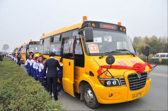西安是舉世聞名的世界四大文明古都之一,西安閻良區(qū)作為教育部確定的全國6個校車試點地區(qū)之一,近兩年順利接送學生102萬人次,無一起安全事故發(fā)生,被教育部確定為全國校車運行管理試點區(qū)。11月9日,西安市隆重舉行了校車運營啟動儀式,投放閻良校區(qū)的21輛錫柴動力校車榮幸成為此次校車的首發(fā)陣容,它們在五彩繽紛的彩煙中率先開啟了西安市的“校車時代”。西安市委常委、常務副市長岳華峰以及市校車工作領導小組成員、學生家長等600余人一同見證了這一具有重要意義的時刻。