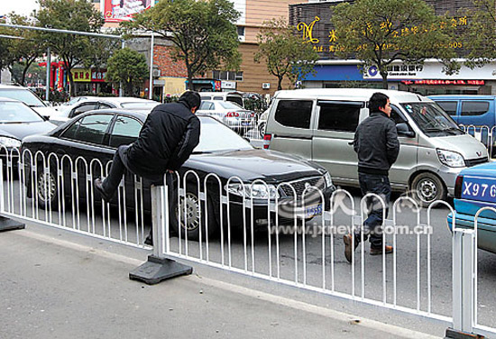 部分市民為趕公交車跨護(hù)欄