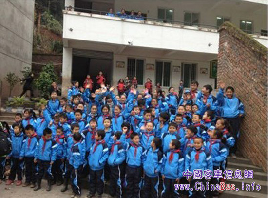 元旦前夕,黃色的,帶有川L59710牌照的“雷雷號”-中通長鼻子校車駛進了沙腔鄉(xiāng)中子坪小學,擔負起他應有的責任,孩子們也笑開了花。