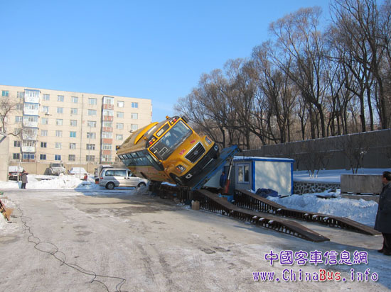 日前,黃海DD6100C01FX專用校車在國家汽車質(zhì)量監(jiān)督檢驗中心(長春)進行了加載式側傾穩(wěn)定性及側翻試驗,并以42.5度臨界角側翻試驗成功,大大超過了新國標32度的要求。經(jīng)受住了高于新國標的嚴格考驗。