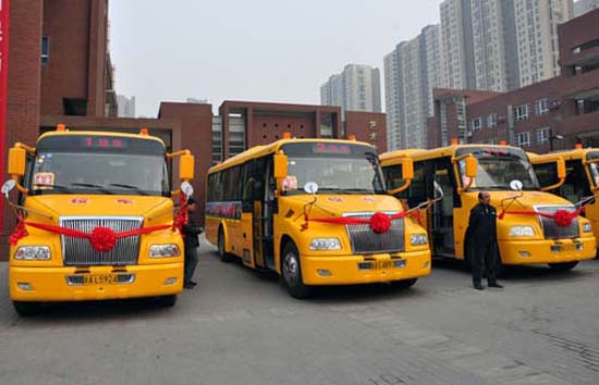 國家關(guān)于校車標(biāo)準(zhǔn)出臺(tái)以后,經(jīng)發(fā)學(xué)校專門派人參加教育部舉辦的校車安全規(guī)范培訓(xùn),采取自籌基金的方式購買了16輛國標(biāo)校車,這16輛校車將擔(dān)負(fù)起市內(nèi)16條線路的學(xué)生接送任務(wù),目前乘坐校車學(xué)生人數(shù)占總?cè)藬?shù)三分一。正式運(yùn)行以后,將解決學(xué)生上下學(xué)安全問題,為廣大學(xué)生家長排解后顧之憂,同時(shí)緩解校門口家長接送車的擁堵問題。