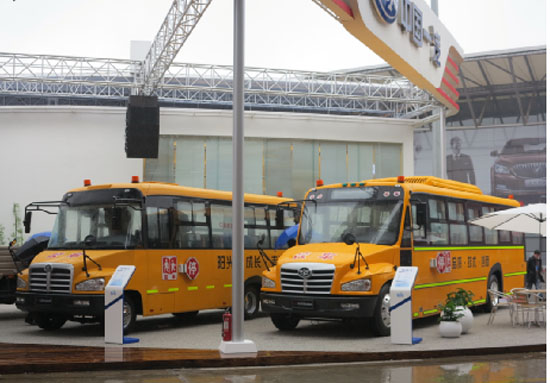 今天是2013第十五屆上海國際汽車展的媒體日,一汽集團(tuán)在室外展場展出了兩款已通過防撞、振動(dòng)、側(cè)翻等20多項(xiàng)安全測試的新款專用校車。
