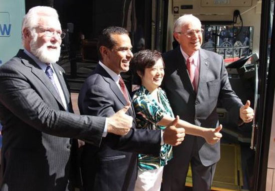 “Metro已經(jīng)運(yùn)營了美國最大的壓縮天然氣巴士車隊(duì),但今天的首次為Metro打開了使用更清潔的大巴的大門,而且這些大巴都將在蘭卡斯特的新工廠組裝。”洛杉磯郡郡長兼Metro董事會主席Michael D. Antonovich表示。早在2011年洛杉磯市市長Antonio Villaraigos就與Metro董事會成員,以及郡長Don Knabe和Antonovich就共同起草了議案快速啟動(dòng)Metro的超級低/零排放大巴項(xiàng)目以達(dá)到加州空氣資源局設(shè)定的減排目標(biāo)。