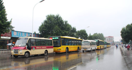 當(dāng)記者趕到南護城河路時發(fā)現(xiàn),在南護城河路與中御橋路交匯處向北,已經(jīng)停放14輛公交車,其中有7輛兗州公交和7輛濟寧北站至兗州的城際公交穿插停放,為首的是一輛兗州公交。記者看到,每輛兗州公交的后面都緊挨一輛濟寧北站至兗州的城際公交,公交車內(nèi)的乘客早已散去,只有駕駛員在公交車上等待有關(guān)部門解決。