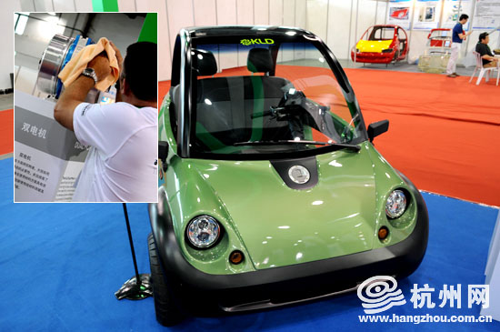 美國KLD公司攜展車到場(KLD Energy Technologies公司設(shè)計(jì)并授權(quán)高性能電動(dòng)機(jī)系統(tǒng)專利技術(shù),公司的核心技術(shù)是一種高頻率、低轉(zhuǎn)速、無變速箱的電機(jī)系統(tǒng),可提高電動(dòng)車的速度和效率。)