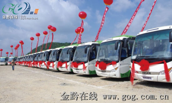 7月15日,2013生態(tài)文明貴陽國際論壇新車啟動(dòng)儀式在貴陽舉行,一批嶄新的金龍旅游車由貴州龍行神州旅游客運(yùn)有限公司正式交付組委會(huì)使用,將在論壇舉行期間負(fù)責(zé)參會(huì)嘉賓的接待工作。