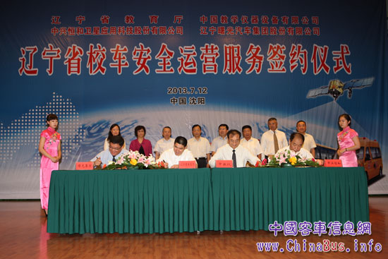 2013年7月12日,遼寧省教育廳、中國教學(xué)儀器設(shè)備有限公司(簡稱中教儀)、北京中興恒和衛(wèi)星應(yīng)用科技股份有限公司(簡稱中興恒和)、遼寧曙光汽車集團股份有限公司(簡稱曙光汽車集團)聯(lián)合在遼寧大廈簽訂戰(zhàn)略合作協(xié)議,將遼寧省確定為全國校車安全北斗服務(wù)示范基地,并計劃三年內(nèi)在遼寧省投放10000輛黃海標準校車,通過建立規(guī)范的校車服務(wù)公司、北斗衛(wèi)星網(wǎng)絡(luò)監(jiān)控數(shù)據(jù)平臺等,為遼寧省校車的安全運營提供信息化、規(guī)范化服務(wù),推動標準校車的全面普及。