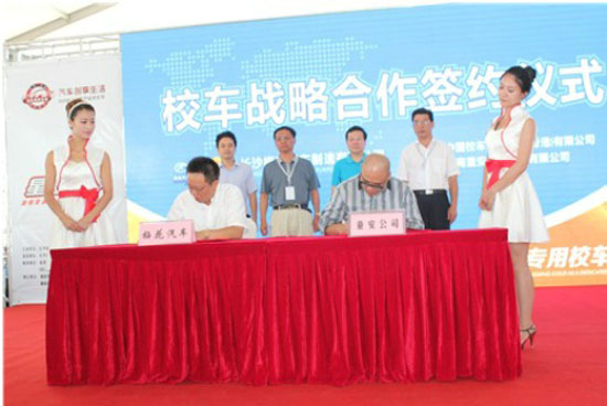 湖南童安校車(chē)服務(wù)有限公司與長(zhǎng)沙梅花汽車(chē)制造有限公司簽訂的戰(zhàn)略合作協(xié)議是本次活動(dòng)的重頭戲。協(xié)議的簽訂,為湖南學(xué)童平安出行再添保障。此次戰(zhàn)略協(xié)議的簽訂,是全國(guó)首次將校車(chē)生產(chǎn)與校車(chē)運(yùn)營(yíng)服務(wù)相結(jié)合共同服務(wù)社會(huì)的一次創(chuàng)新,為中國(guó)學(xué)童平安出行走出了一條新的發(fā)展道路。被行業(yè)認(rèn)為是兩大校車(chē)巨頭的聯(lián)姻。