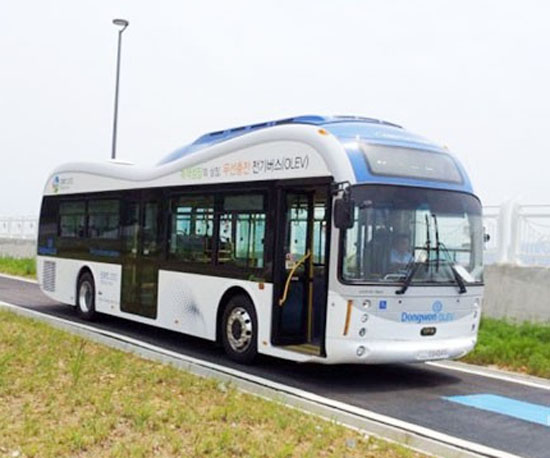 公路全程 24 公里,兩輛 OLEV 電動公交車定期往返運送旅客,該市計劃到 2015 年再添加 10 輛 OLEV 公交車。在行駛中,公交車能以 85% 最大輸電效率無線接收 20 kHz 、100 kW 電力,汽車底盤與路面相距 17 厘米。