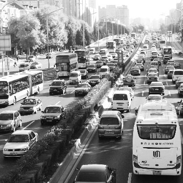 節(jié)能與新能源汽車為城市節(jié)能減排作出了重大貢獻。圖為北京北三環(huán)車輛繁忙的景象。