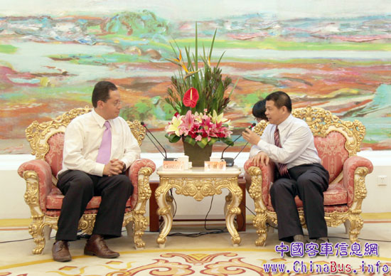李棟梁副市長在會談中指出,城市的發(fā)展離不開公交,以政府為主導(dǎo)的公交在便民出行、提升城市管理、打造節(jié)能環(huán)保城市等方面具有優(yōu)勢。拉巴斯市在公交改革中,選擇大金龍,就是選擇了中國的優(yōu)質(zhì)產(chǎn)品。李棟梁副市長介紹,大金龍是廈門汽車基礎(chǔ)產(chǎn)業(yè)的支柱,也是中國名牌、馳名商標(biāo),有著過硬的產(chǎn)品質(zhì)量,現(xiàn)代化的管理,高素質(zhì)的團(tuán)隊(duì),創(chuàng)新的平臺,在中國客車企業(yè)中居于領(lǐng)先地位,且近年在海外拓展上取得了長足的進(jìn)步。玻利維亞所在的南美市場,對客車潛在需求的量較大,希望此次合作能帶動大金龍?jiān)谀厦朗袌龅耐卣?。同時,李棟梁副市長表示,拉巴斯市為高原內(nèi)陸城市,廈門為海濱城市,兩地在城市管理上互補(bǔ),希望以大金龍為紐帶,找到雙方的對接點(diǎn),促進(jìn)兩地的聯(lián)系更加緊密。