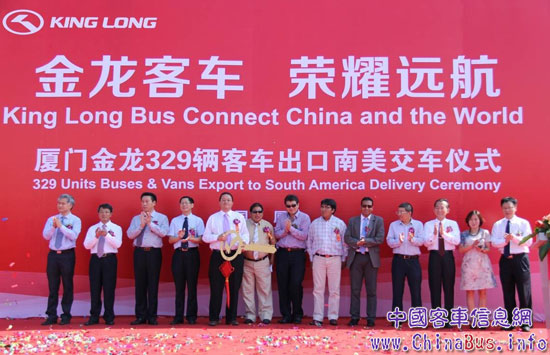 2013年9月9日,“金龍客車榮耀遠航——廈門金龍329輛客車出口南美交車儀式”在廈門現(xiàn)代碼頭隆重舉行。