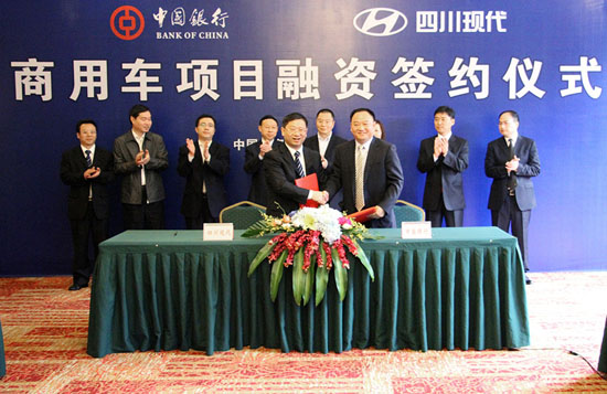 會(huì)上,中國(guó)銀行資陽分行與四川現(xiàn)代汽車有限公司簽署商用車項(xiàng)目融資協(xié)議。根據(jù)協(xié)議,中行將為四川現(xiàn)代汽車有限公司提供16 億元授信總量,為企業(yè)加快新工廠建設(shè)、迅速提升裝備水平、實(shí)現(xiàn)企業(yè)規(guī)?;?jīng)營(yíng)等提供有力的資金支撐。