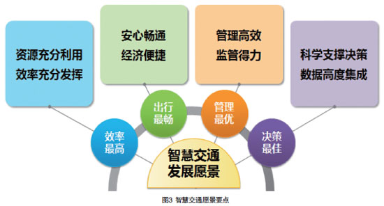智慧交通發(fā)展愿景可以高度概括為四點。如圖3所示。