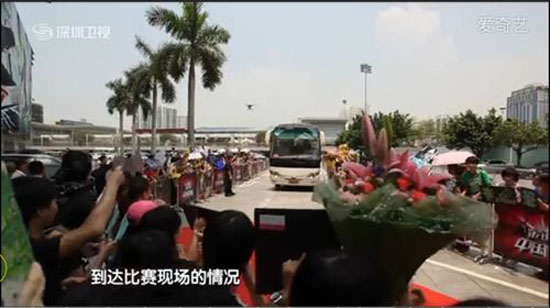 為了歡迎即將參賽中國音超的偶像,不少粉絲已經(jīng)等候在現(xiàn)場。