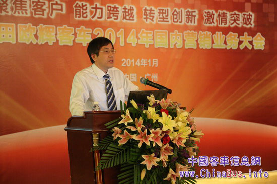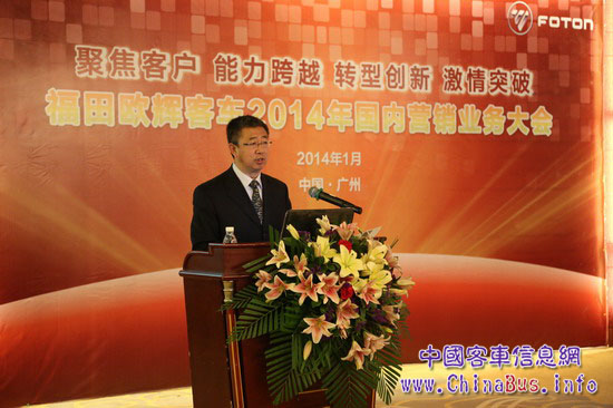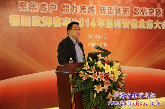 1月5日—6日,北汽福田歐輝客車事業(yè)部在廣東省佛山市召開福田歐輝客車2014年國內(nèi)營銷業(yè)務(wù)大會,大會以“聚焦客戶、能力跨越、轉(zhuǎn)型創(chuàng)新、激情突破”為主題,在總結(jié)2013年度目標(biāo)市場情況及歐輝客車市場工作成績、分析2014年行業(yè)市場動向的基礎(chǔ)上,對新一年客車營銷業(yè)務(wù)做出了有據(jù)規(guī)劃,福田汽車集團(tuán)副總裁、歐輝客車事業(yè)部總經(jīng)理解佃峰、福田汽車集團(tuán)副總裁、歐輝客車事業(yè)部常務(wù)副總經(jīng)理范現(xiàn)軍等領(lǐng)導(dǎo)班子成員出席大會。