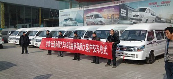 華晨金杯,國內輕型客車市場的領航者,一直以過硬的性能和超值的價格,在同級車中銷量遙遙領先。2014年1月14日,甘肅仕通華晨金杯海獅再顯迅猛威力。甘肅客運公司再次續(xù)購18輛華晨金杯海獅,18臺金杯海獅在華晨汽車4S店門前一字排開,威風凜凜、整裝待發(fā)。18臺大單的順利交付,用事實有力證明華晨金杯海獅的優(yōu)異品質,也是對甘肅仕通華晨汽車的極大肯定。