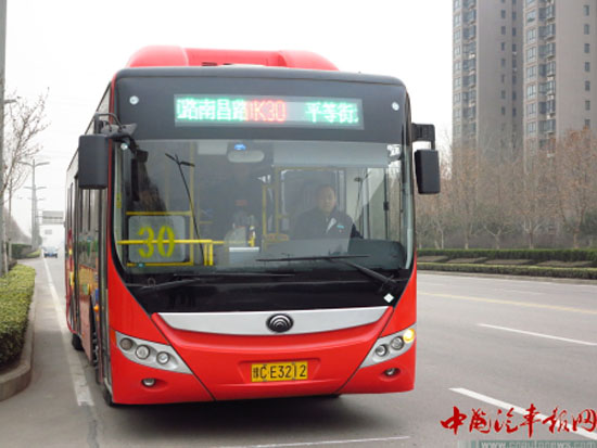 比賽用車是洛陽不久前購買的宇通氣電混合動力公交車