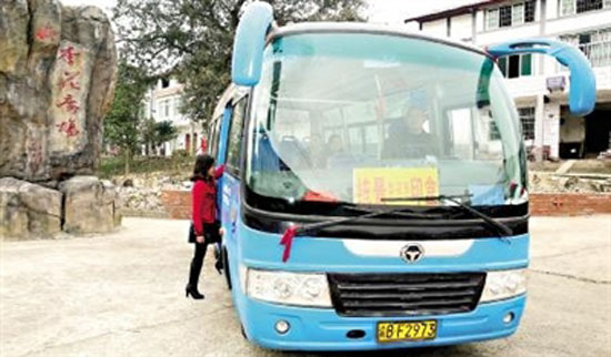 農(nóng)客開通當(dāng)天下午,劉葉琴就牽著她的侄女來到臨時(shí)車站,登上了開往統(tǒng)景的“農(nóng)客”?!拔胰ソ游业男『?,他在鎮(zhèn)上讀書?!眲⑷~琴告訴記者,以前,由于不通客車,小孩讀書特別不方便?!爸熬褪亲ν小ⅰ昂诿姘嚒?,都不怎么安全,我不放心?!睘榱藴p少來回往返,她在鎮(zhèn)上給孩子租了間房子。