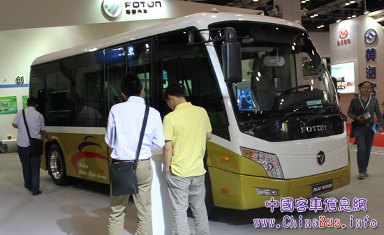 福田歐輝展臺(tái)展示的新品BJ6650迷你快充電動(dòng)巴士