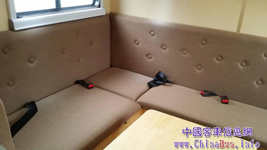 內(nèi)飾設(shè)計(jì)上,該房車全部采用高品質(zhì)的實(shí)木木料,并帶有一自主創(chuàng)新設(shè)計(jì)的環(huán)形沙發(fā),可容納更多乘坐人員,據(jù)中通負(fù)責(zé)人介紹,因是環(huán)形設(shè)計(jì),該沙發(fā)容納七八個(gè)人都不顯得擁擠;娛樂設(shè)備方面,該車帶有兩個(gè)電視機(jī),可充分增加乘客的出行樂趣;此外,為保證車內(nèi)空間的充分利用,中通LCK5041XLJQ4A型房車采用電動(dòng)踏步設(shè)計(jì),既方便乘客上下車,又能節(jié)省空間,沙發(fā)床更是采用上下升降設(shè)計(jì),四個(gè)人都可以住的非常舒服。
