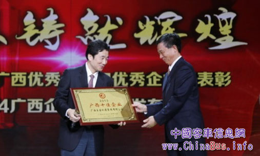 近日,廣西企業(yè)家活動日在南寧舉行?;顒赢斕毂碚昧?013年度廣西優(yōu)秀企業(yè)和企業(yè)家,并發(fā)布2014年廣西百強企業(yè)。玉柴集團董事局主席晏平代表集團接受“廣西十佳企業(yè)”和“廣西十佳企業(yè)家”牌匾。