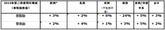 亞洲(不包括印度)的總體子午線和斜交輪胎需求增長4%。由于經(jīng)濟降溫,中國市場上半年最終取得6%的增長,但是第二季度顯著放緩。在東南亞,受增長極為強勁的2013年上半年對比基數(shù)和泰國政治危機影響,原配胎市場重挫23%。在日本,強勢日元推動的卡車出口促使原配胎需求增長21%。