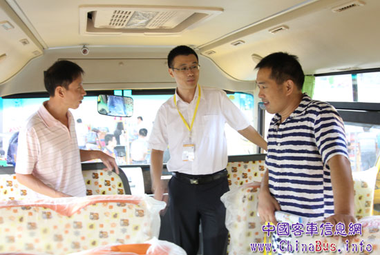 海格校車產(chǎn)品經(jīng)理李春為客戶介紹校車