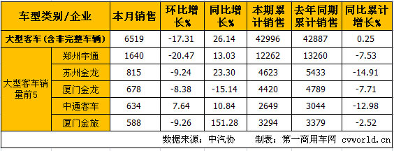 大型客車銷量情況: