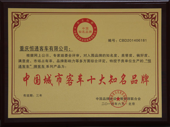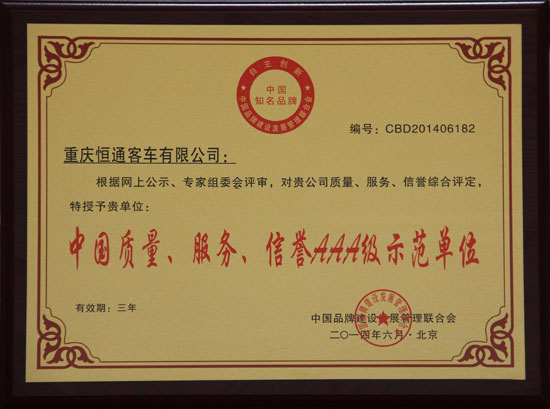 近期,恒通客車(chē)榮獲了中國(guó)品牌建設(shè)發(fā)展管理聯(lián)合會(huì)頒發(fā)的“中國(guó)城市客車(chē)十大知名品牌”和“中國(guó)質(zhì)量、服務(wù)、信譽(yù)AAA級(jí)示范單位”兩大榮譽(yù)稱(chēng)號(hào)。中國(guó)品牌建設(shè)發(fā)展管理聯(lián)合會(huì)系從事企業(yè)品牌認(rèn)證服務(wù)的專(zhuān)業(yè)性社團(tuán),聯(lián)合會(huì)授予恒通此兩項(xiàng)殊榮,是對(duì)恒通客車(chē)不斷增強(qiáng)的品牌影響力、品質(zhì)服務(wù)等等綜合實(shí)力的充分肯定。