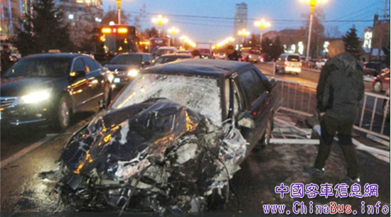 近日,吉林市街頭發(fā)生了一起惡性交通事故。一輛由南向北行駛的黑色捷達轎車撞了路中間的護欄后,撞到一輛自北向南正常行駛的宇通校車上。結(jié)果捷達轎車被宇通校車“彈飛”,與另外5輛車連環(huán)相撞,捷達轎車司機受傷,而宇通校車的司機和車中學(xué)童,毫發(fā)無損,只有校車的保險杠略微彎曲。