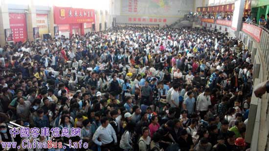 陜西西安城西客運(yùn)站五一乘客爆棚