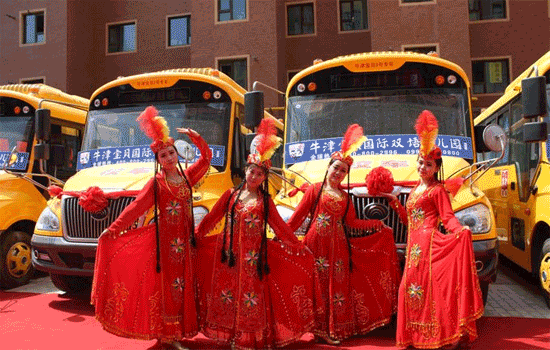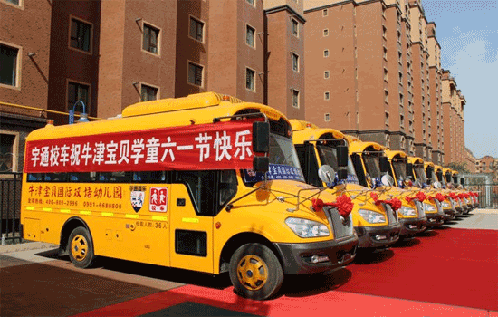 5月31日,宇通在烏魯木齊牛津?qū)氊悋H雙語幼兒園內(nèi)舉行了校車交車儀式。此次宇通交付使用的10輛ZK6669DX“長鼻子”校車,將用于接送該幼兒園的學(xué)童上下學(xué)。