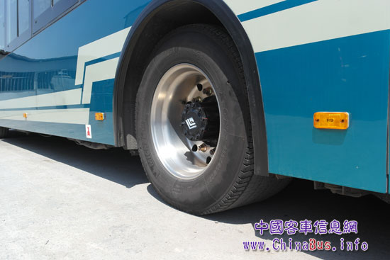 不過,將雙胎換成單胎也存在一個缺點,就是怕爆胎。原本兩個輪胎如果其中一個爆胎并不會對車輛安全構(gòu)成嚴(yán)重威脅,然而單胎爆胎將會直接影響車輛運行。徐司晨告訴記者,為了提升車輛安全性,避免爆胎情況的發(fā)生,該批車輛選用了米其林輪胎和美鋁輪圈中較為成熟的產(chǎn)品,并且安裝了胎壓警報系統(tǒng)。