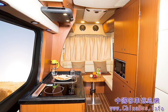 凱特旅居車的乘客區(qū)可打造成百變空間。車內(nèi)豪華沙發(fā)與可升降方桌可組合,舒適大床也可圍成舒適休閑區(qū),休閑、休息兩不誤。另外駕駛室上方寬敞的上層空間大大提升了整車儲物能力,也可打造為溫馨的休息區(qū)。除此之外,車內(nèi)微波爐、電磁爐、電冰箱、洗菜池、抽油煙機(jī)等廚房設(shè)備一應(yīng)俱全。獨(dú)立洗手間配有淋浴、洗手臺、電動馬桶等。為客戶創(chuàng)造生活設(shè)備齊全的小居室。