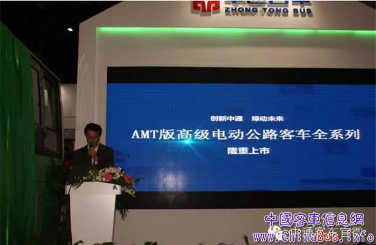 隨后,李篤生部長(zhǎng)對(duì)中通全系列AMT版公路客車進(jìn)行了發(fā)布,并對(duì)2015年企業(yè)發(fā)展情況進(jìn)行了介紹。