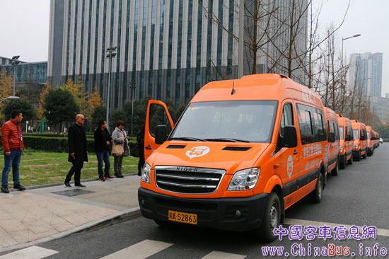 12月1日飛牛巴士116輛接駁巴士在成都東汽車客運(yùn)站首發(fā)。行業(yè)主管部門領(lǐng)導(dǎo),客運(yùn)站領(lǐng)導(dǎo)與新聞媒體齊聚東站,為飛牛巴士送上了美好的祝福。純電動(dòng)的公交車和小轎車在成都并不新鮮, 而超過百輛純電動(dòng)接駁客車海格H6V集中亮相成都,卻是引起了不小的反響。橙色的車身,“飛牛巴士 客車訂票 免費(fèi)接送”的醒目宣傳語,116輛飛牛巴士開啟純電動(dòng)輕型客車環(huán)保低碳路演行動(dòng)。